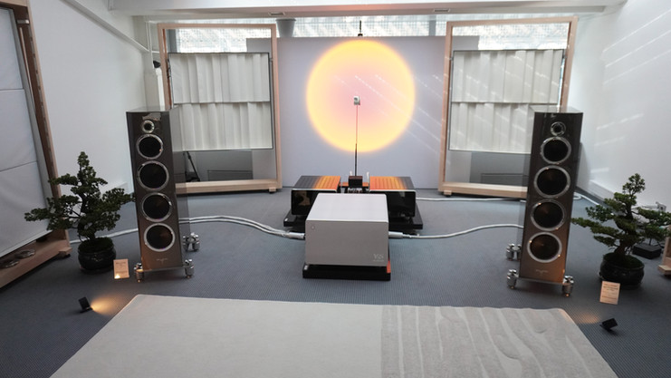 Zellaton 的老闆 Michael 和我算是認識,他習慣先說瑣碎事,之後才入正題,今次的話題集中在幻彩藝術燈,價錢很貴而且限量製造,幾經辛苦找到兩盞,放在展房裡配襯自家喇叭,意味著 Zellaton 喇叭也是藝術品!現場展出了現役旗艦 Reference Ultra,配置了 3 個 9" 低音單元、1 個 7" 中音單元及 1 個1.3" 高音單元,全屬於自家製作,這款旗艦出奇地易推,靈敏度達 91dB,頻應更由 22Hz-40kHz,售價為270,000 美金,對上一次在 Zen & The Art Of Fine Audio 搞了兩天發佈會,其中一場有位用家即場認購了,還盛讚音色比他使用的那款 Zellaton 喇叭更出色,我看 Michael 面上流露出自信表情,說明只要找到知音人,產品的售價再高也沒問題!